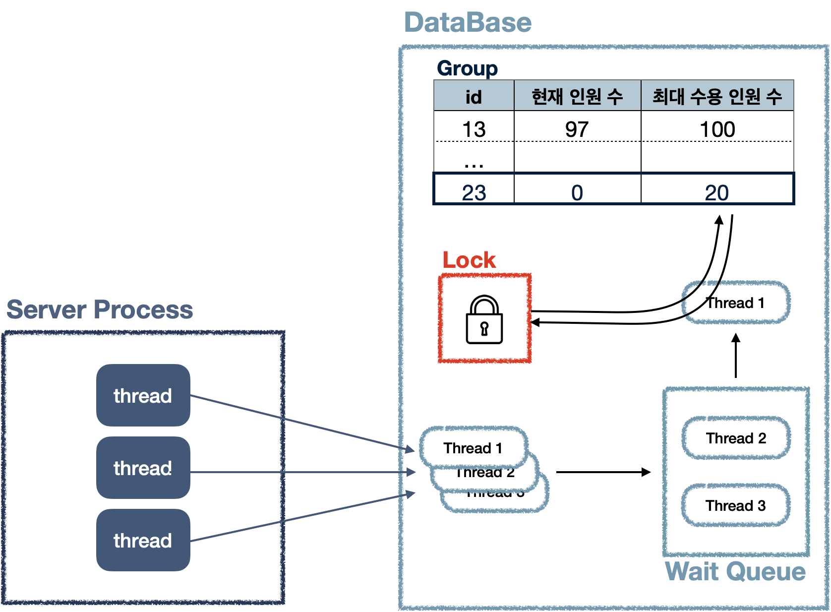 - Lock이 해제되면 Wait Queue에서 DB 내부 상황(데드락, 트랜잭션 격리 수준)에 따라, Lock을 획득하여 요청을 처리한다.